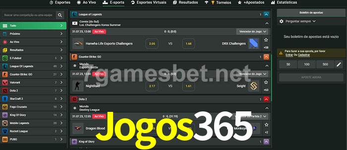 A aposta Jogos365 oferece aos jogadores a experiência mais conveniente de apostas em eSports!
